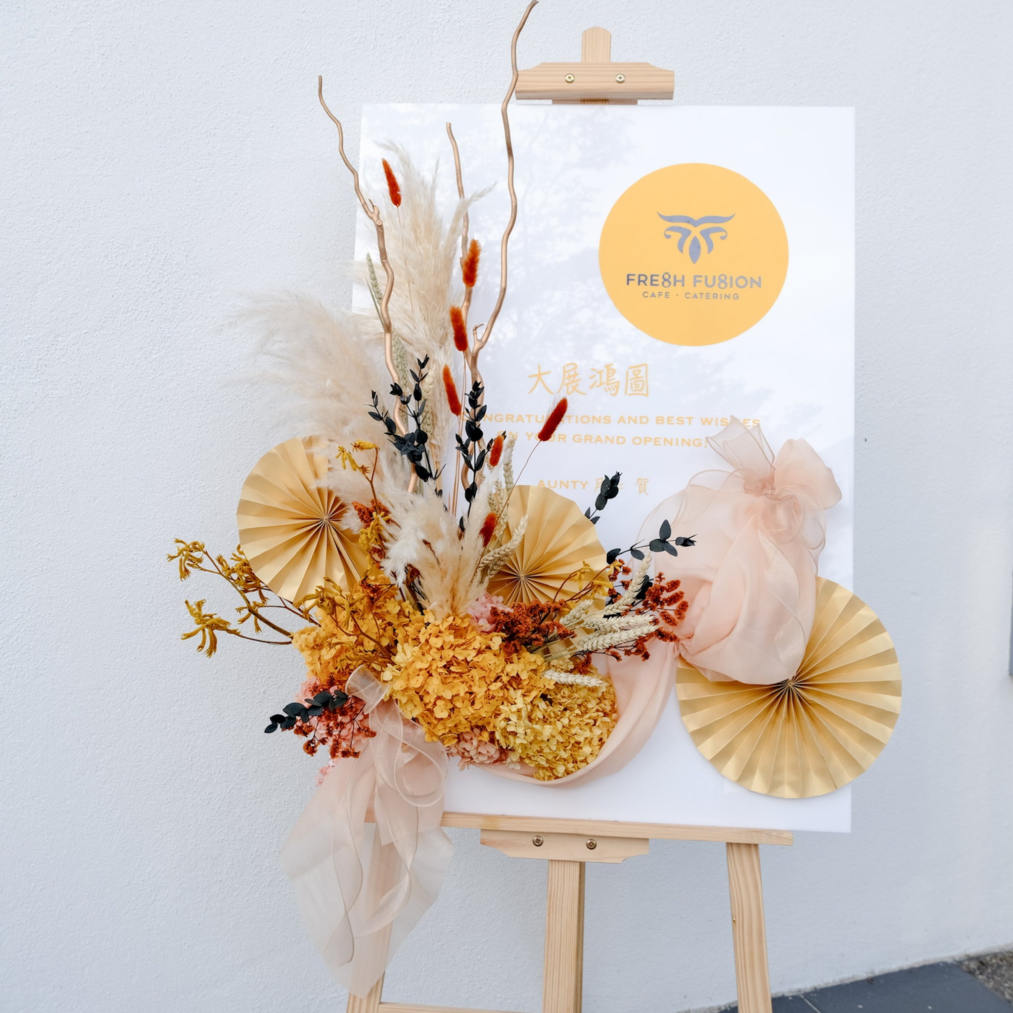 Note: Theme colours of each arrangement will be tailored to align with the store’s design or logo. Kindly provide us with the store logo and design details of the opening.