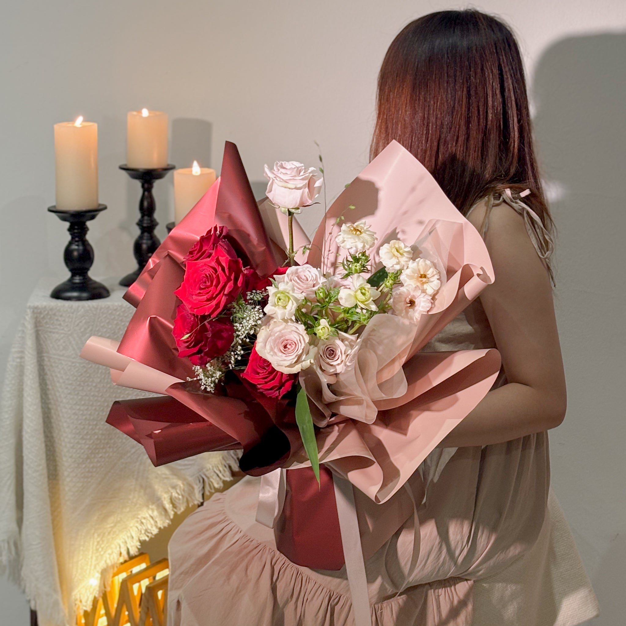 • 12s Fresh Flower Bouquet (Premium Red Rose & Premium Quicksand Rose)
